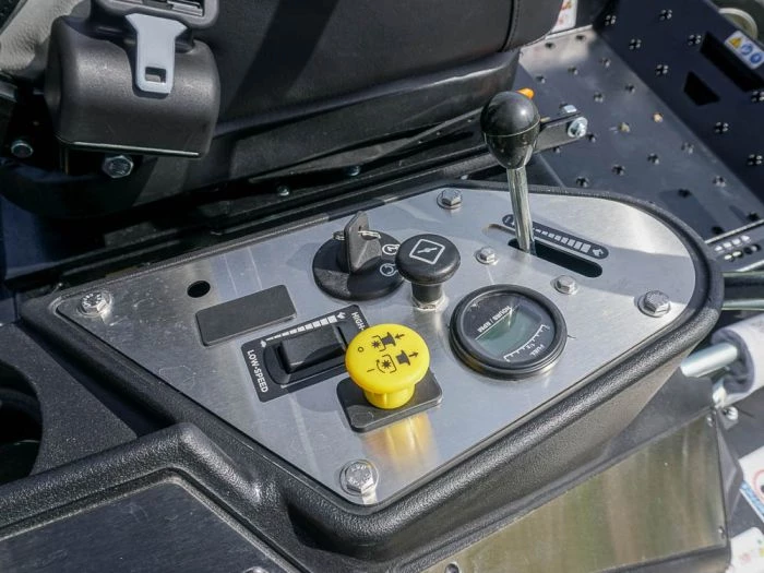 - OCDC (operator-controlled discharge chute) foot-operated pedal keeps hands on the steering levers
