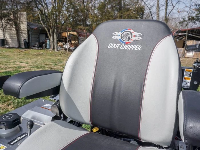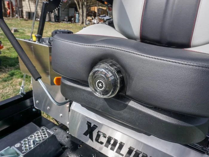 - High-back suspension seat with recline, lumbar, and padded armrests