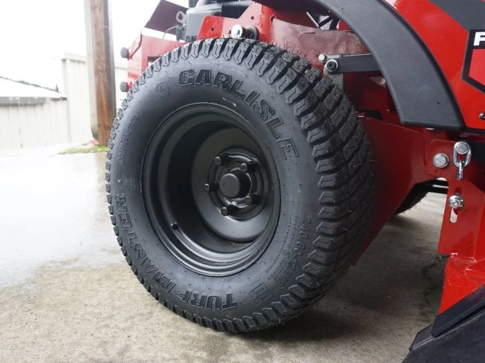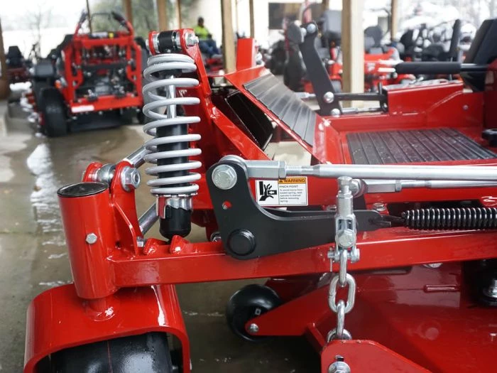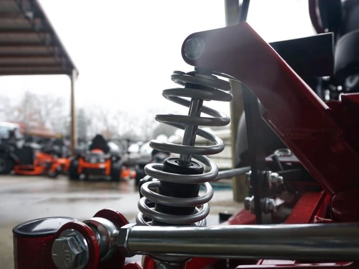 - Utilizes four upper and lower control rods and mower-specific shocks to ensure the front caster bearing remains vertical