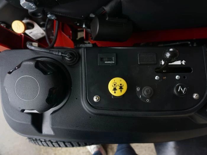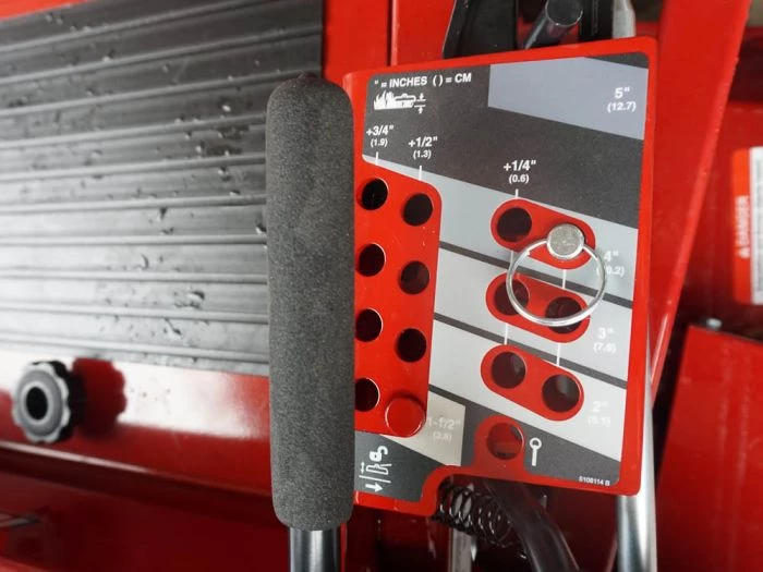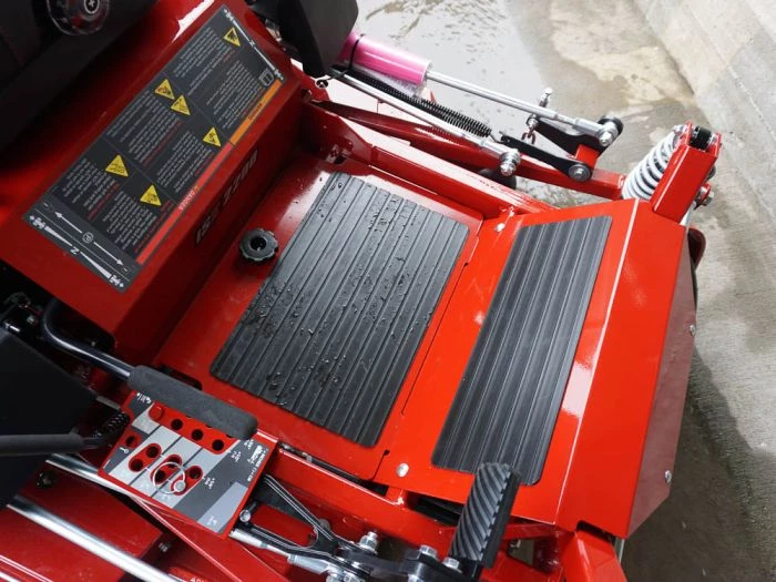 - Foot-operated deck lift with foot pedal control for cutting heights between 1.5″- 5″