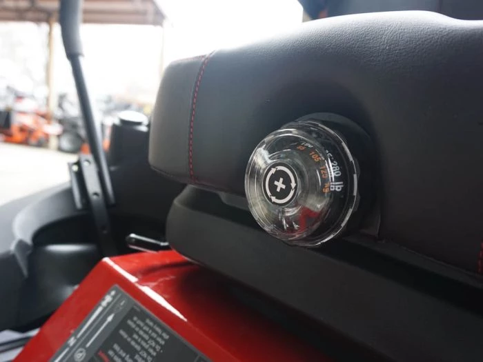 - Premium, high back suspension seat with armrests and adjustable lumbar and back recline