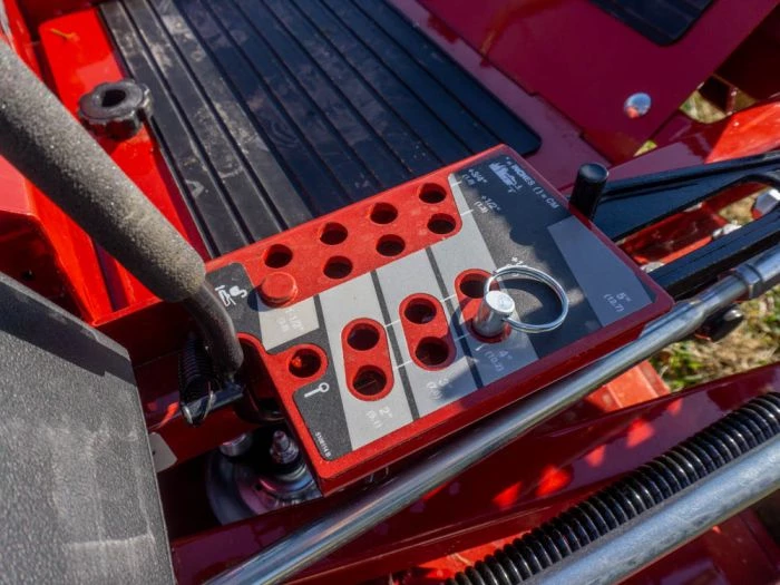- Foot-operated deck lift with pedal for cutting heights between 1.5″-5″