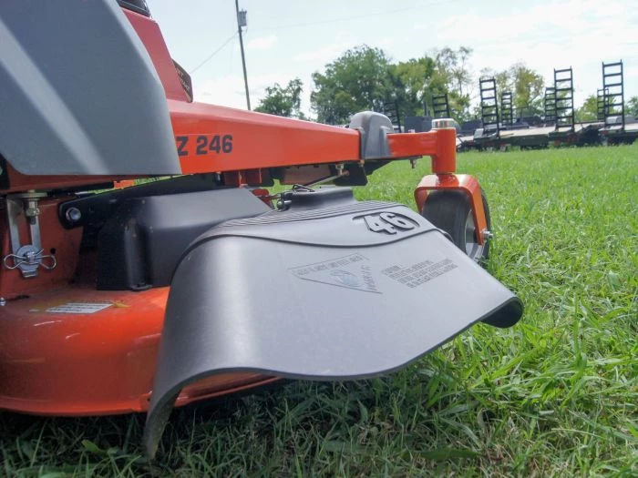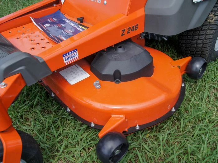 - 46″ reinforced steel stamped cutting deck