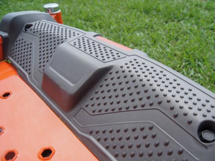 - Removable foot plate for easy access to top of cutting deck