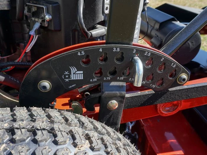 - Rear tires and single-point height of cut adjustment make clearing curbs fast and easy