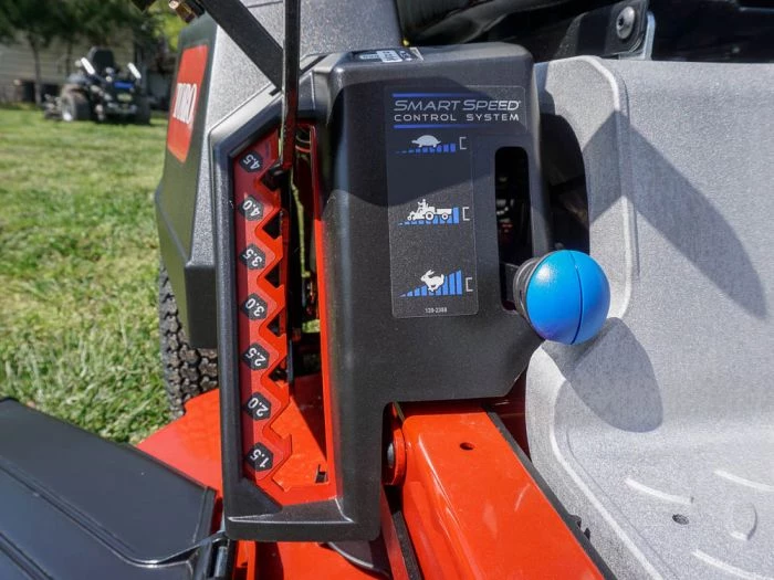 - Smart Speed® technology allows control over mowing speed without sacrificing blade tip speed