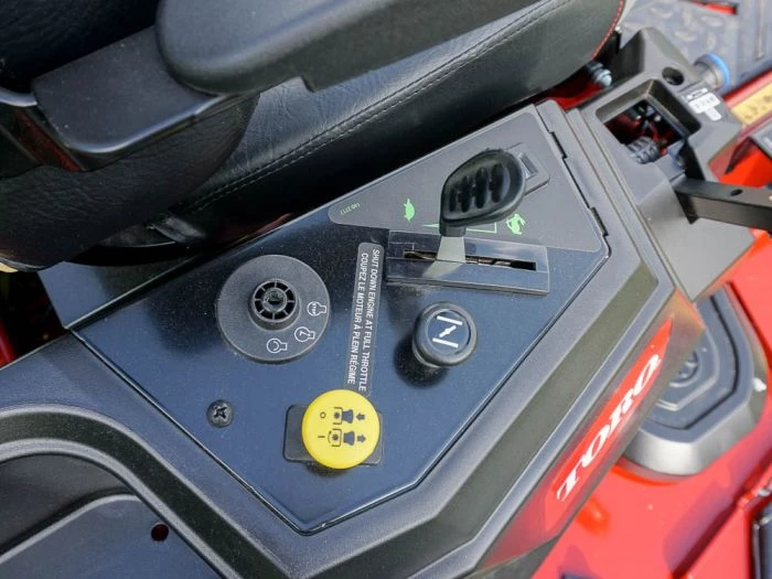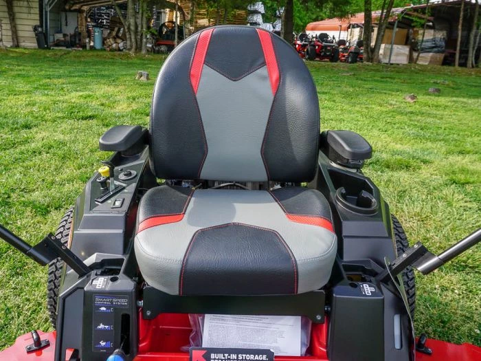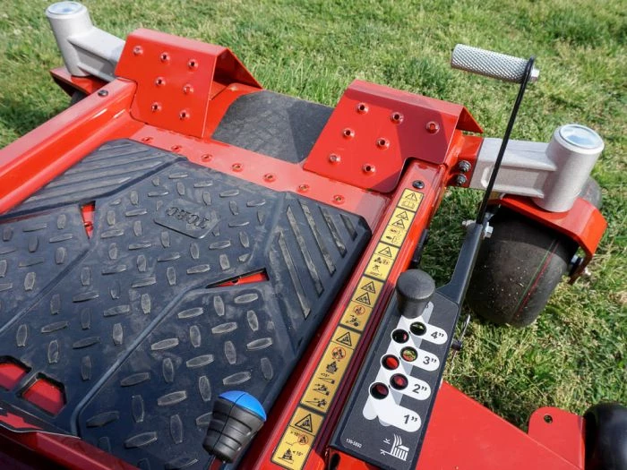 - Step-through front end makes getting onto and off of the mower easy and safe