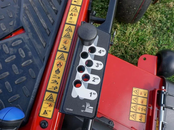 - Pedal adjusted deck lift for easy cutting height adjustment