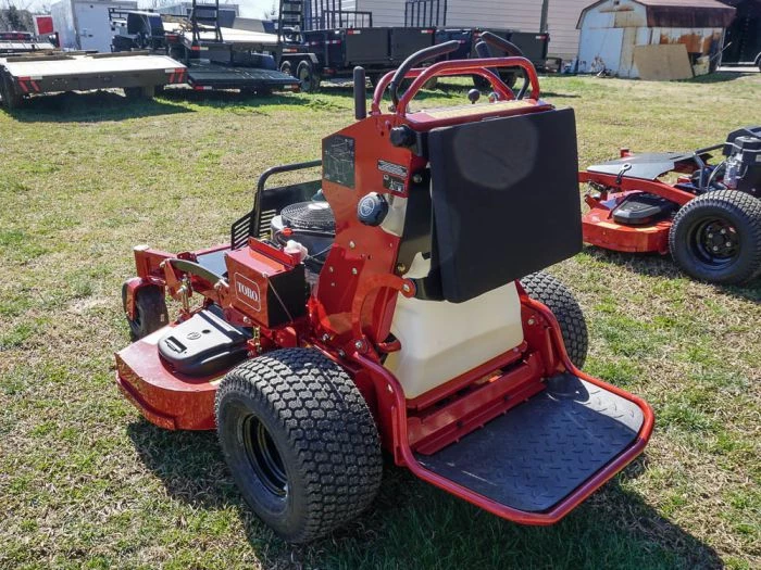 - The low center of gravity of stand-on mowers hug hills and slopes. Operators can easily shift their weight as needed to enhance performance